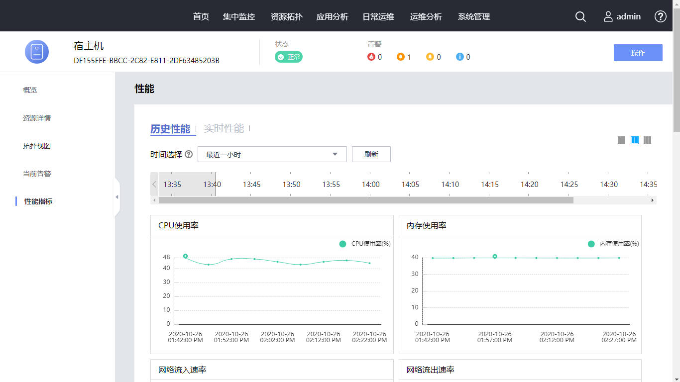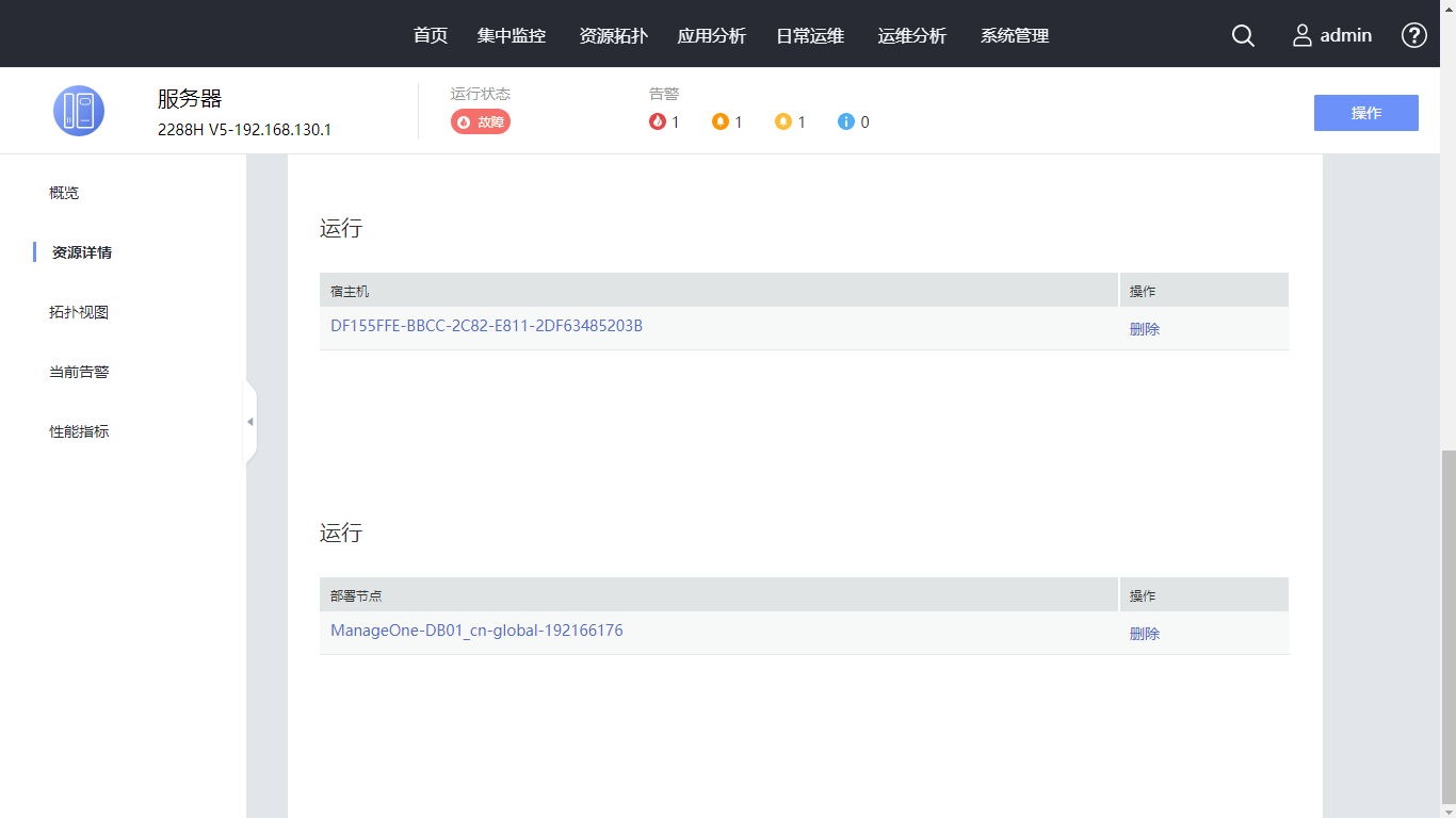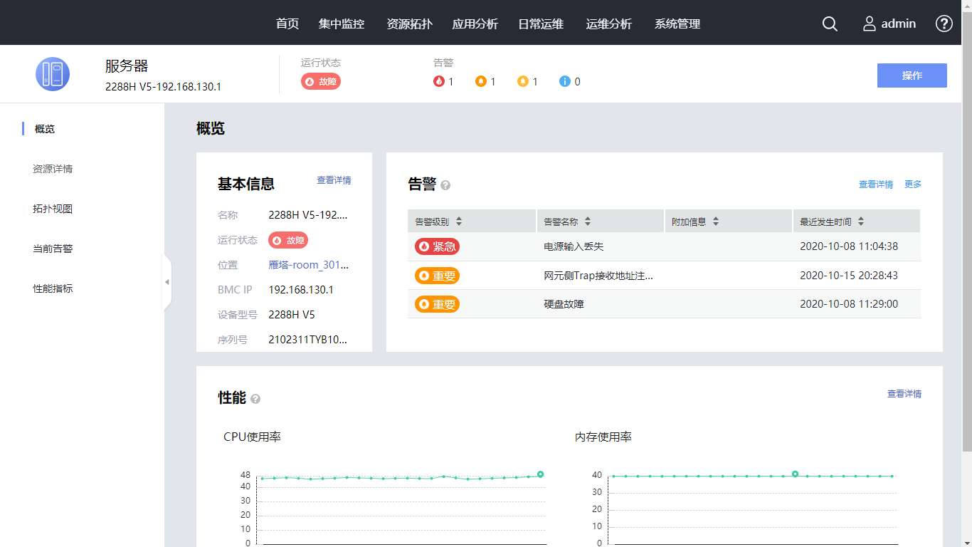 查看资源的概览,包括基础信息、告警和性能。请您继续单击左树“资源详情”,进入资源详情页面。