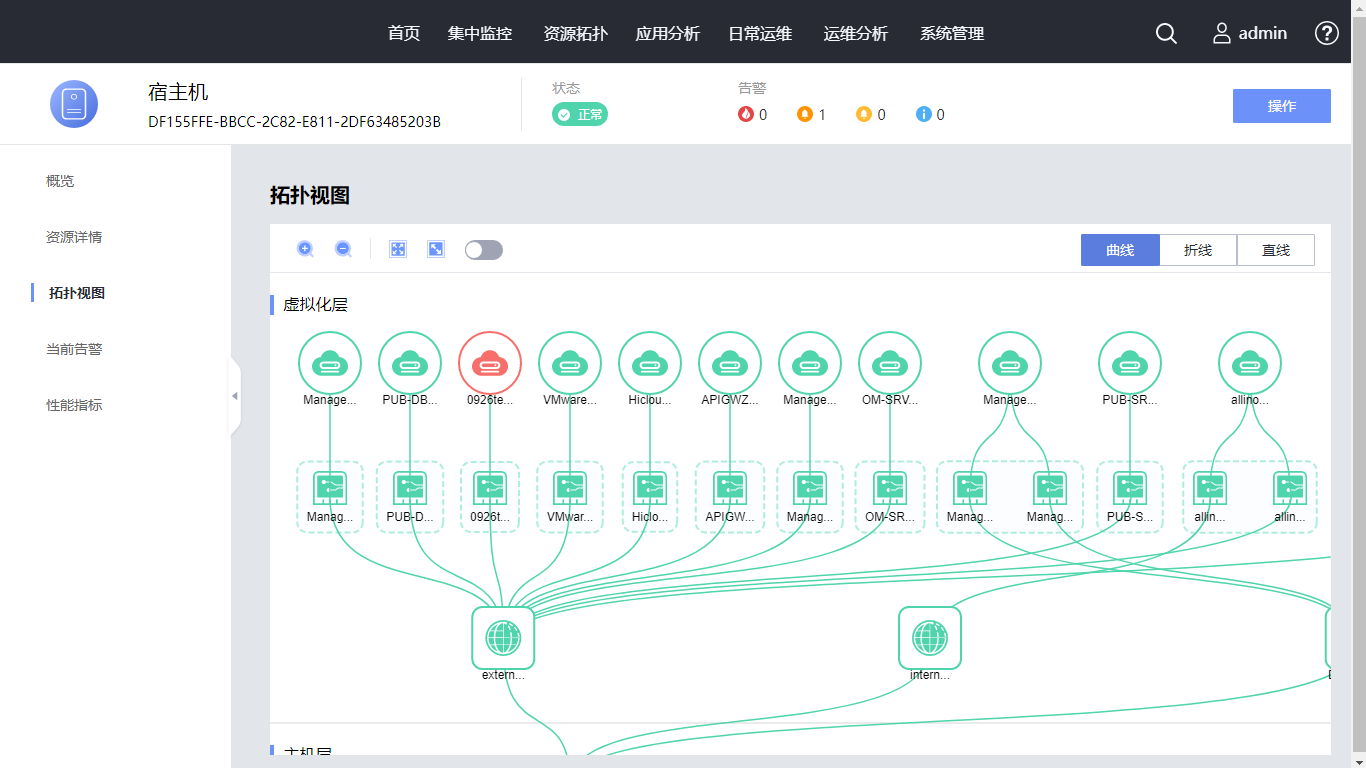 在 “拓扑视图”页面,查看资源及其相关的所有资源的关联关系。放置鼠标在资源的图标上,展示资源的基本信息。可双击资源图标,跳转到该资源的拓扑视图页面查看。