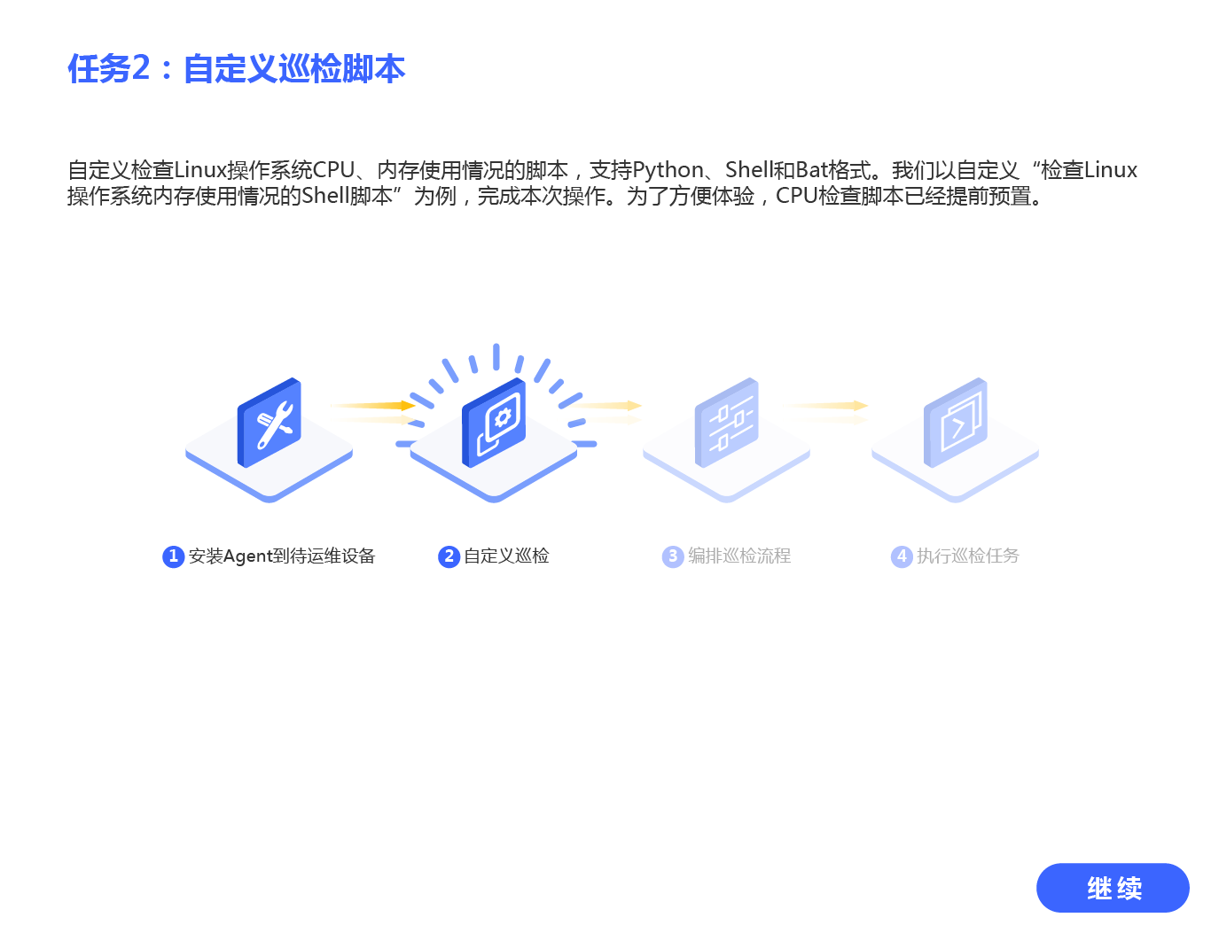 请您继续在左边导航选择“编排管理”,开始编排巡检流程。