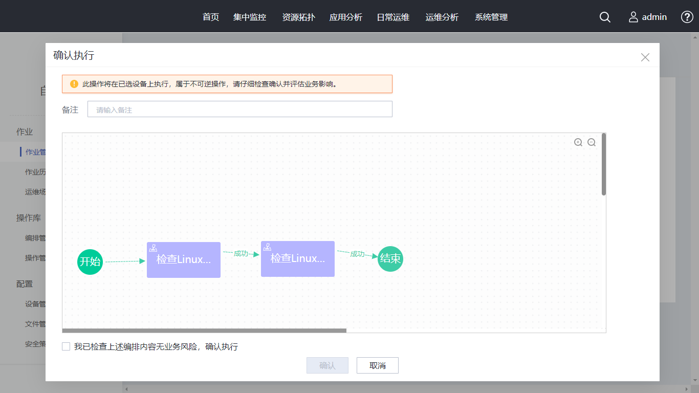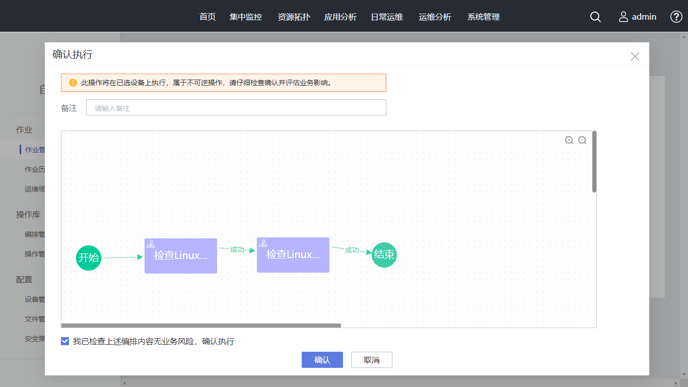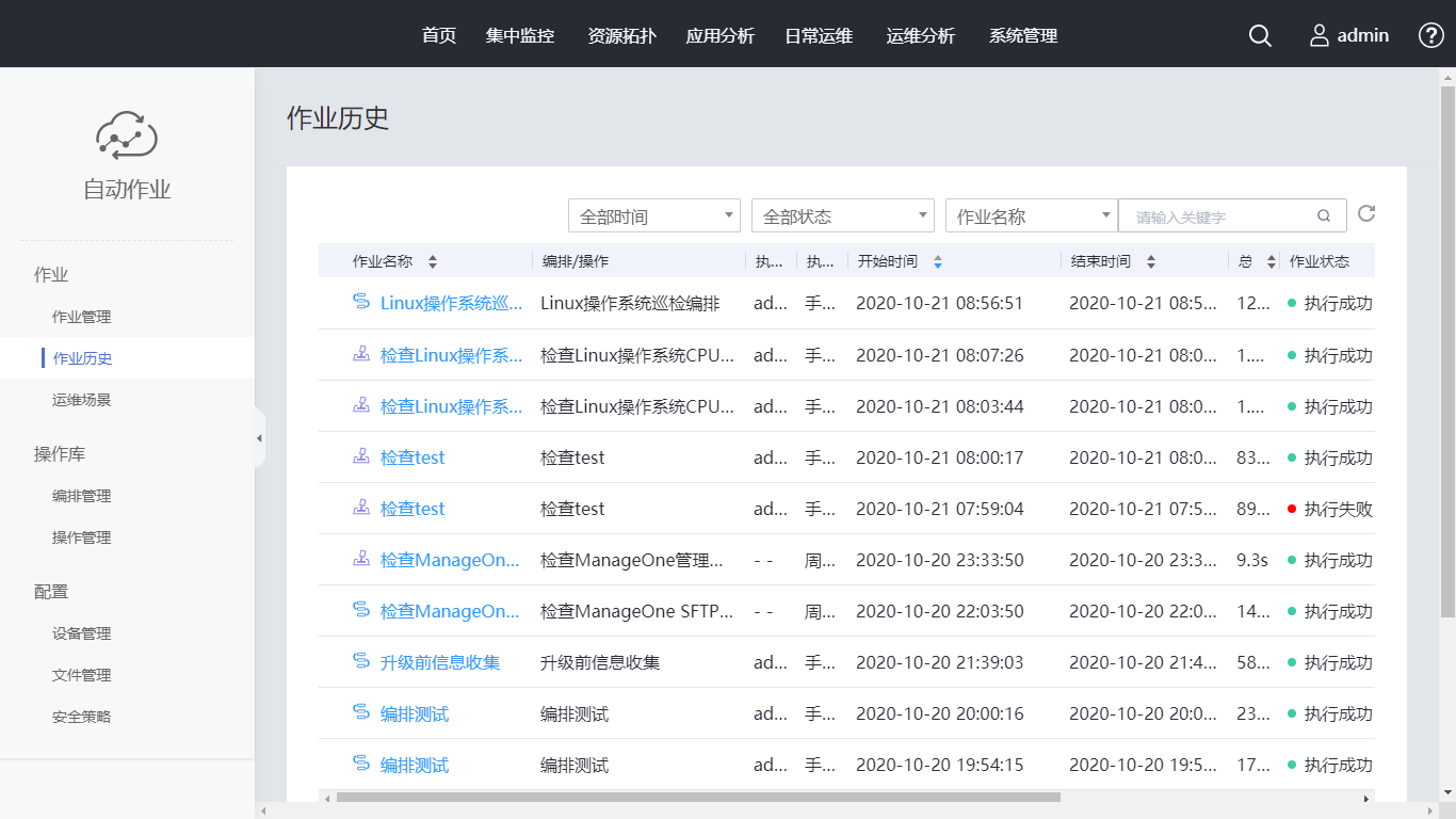 单击“保存并执行”,并确认执行情况,待作业历史主界面作业状态为“执行成功”,表示巡检任务执行成功。